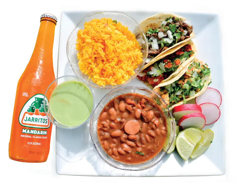 - ALL LUNCHES INCLUDES: Rice, black or traditional mexican pinto beans, grilled jalapeños & sweet cambray onions with fresh corn tortillas.